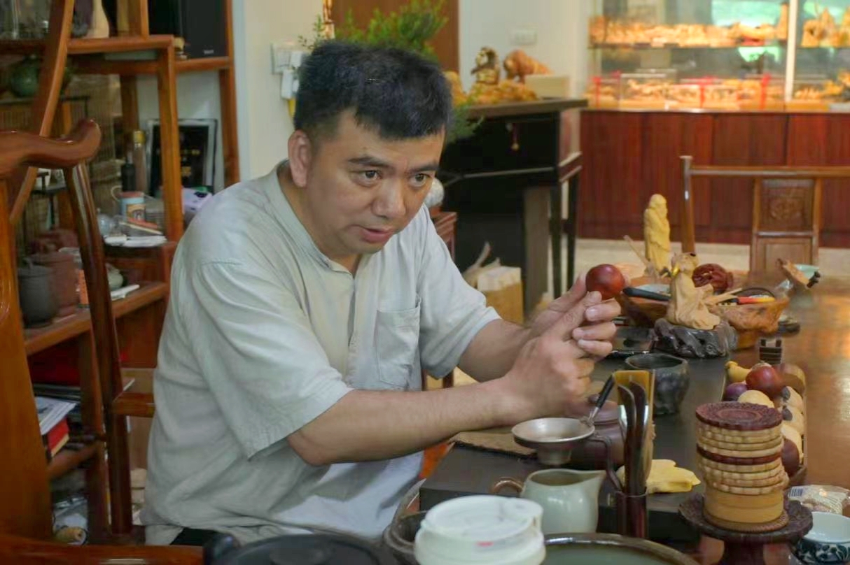 “去年文创水果作品卖出70万件,而那种高端的收藏级作品可能两年都不一定卖出一件。”叶柱展示了他们的双轨发展模式:收藏品是技艺丰碑,文创爆款则是养活手艺的血脉。展厅陈列着的檀香木雕《八仙过海》,仅材料费就高达数万元;而另一边亚运会主题的冰箱贴,单价仅40元。