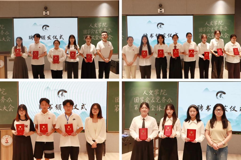 在老师致辞中,徐樵楚表达了对新一届学生干部的殷切期望,勉励大家履职尽责、积极作为。随后,各位老师分别为主席团、团学会及党务办各部门代表颁发聘书。